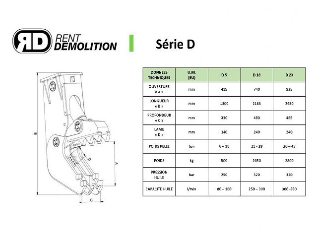 Profondeur machoires : 485 mm