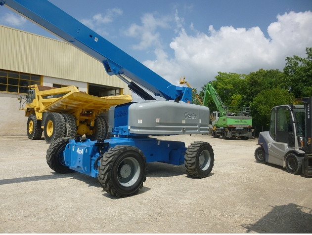 5744 heures compteur Bras telescopique 26m Pneus AV Outrigger / pneus AR Blackstone - 385-65D22.5 15% d'usure Dimensions de transports: L: 12.40m - l: 2.42m - H: 2.75m Poids: 16.447 T |