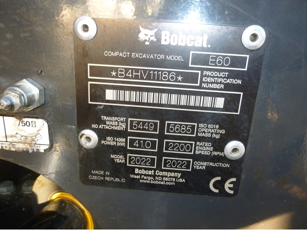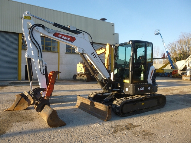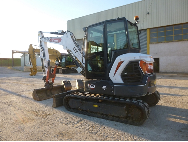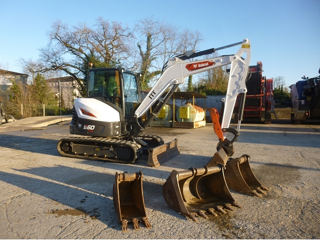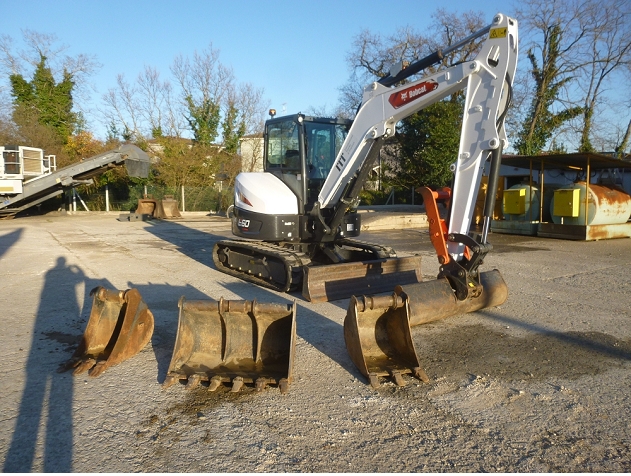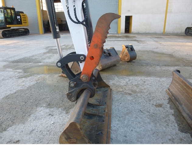Heures compteur = 858 h Coupleur mecanique Morin module M2S 3 godets terrassement 350, 450 et 900 mm 1 godet curage P1 1660 mm Pince hydraulique Bobcat Dimensions de transport : L = 5,54 m / l = 1,96 m / H = 2,55 m / Poids = 6,1 T |